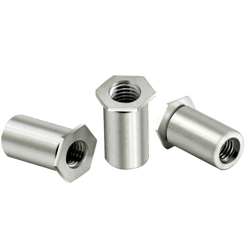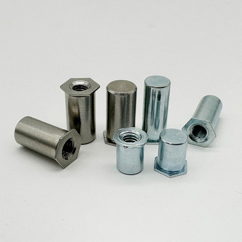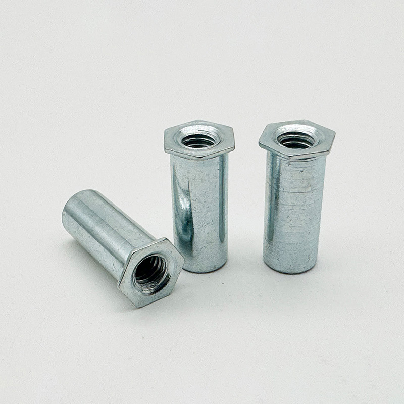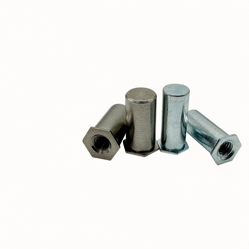 Kolumni za šesterokotno oreho iz ogljikovega jekla je specializiran pritrdilni element z notranjimi nitmi. Narejena je za ustvarjanje težkih, obremenitvenih niti v tankih ali krhkih materialih, kjer ne morete uporabljati varjenja. Deluje kot stalno sidro, ima šesterokotno telo, ki ga med namestitvijo ustavi, da se vrti. Votlo stolpec se zruši navzven, ko uporabljate orodje za zakovice, ki tvori trdno izboklino na slepi strani.