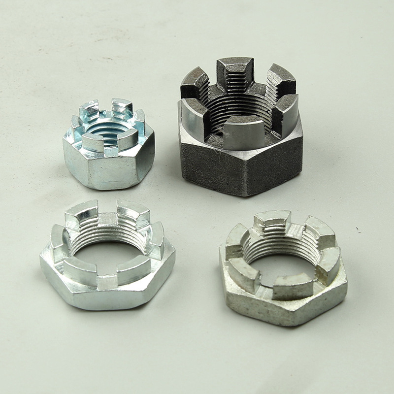 O: Glavna naloga dvojne zavarovane kronske matice z režo je, da se tesno zaklenete na navojni vijak ali čep - zato se ne izgubi, ko je vibracija. Ima tisto krono (ali kastelirano, kot z majhnimi zarezami) dizajn, ki vam omogoča, da drsate kotter zatič ali varnostno žico skozi reže in luknjo v vijaku. To ustvarja trdno mehansko ključavnico, ki ne bo zdrsnila.