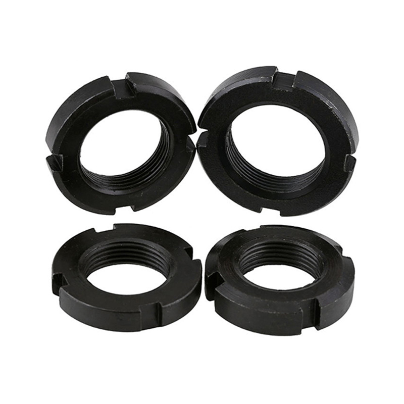 O: Zaklepna okrogla matica z dvojno zavarovano režo je zasnovana tako, da se varno zaskoči na komponento z navojem, hkrati pa omogoča enostaven vizualni pregled. Primarna funkcija te zaklepne okrogle matice z dvojno zavarovano režo je preprečiti popuščanje pod vibracijami v sklopih, kot so vrtljive gredi, osi in natančni stroji. Njegova okrogla oblika z režami omogoča vstavljanje razcepke ali varnostne žice, zaradi česar je zaklepna okrogla matica z dvojno zavarovano režo bistvena za varnostno kritične aplikacije v avtomobilskem in industrijskem sektorju.
