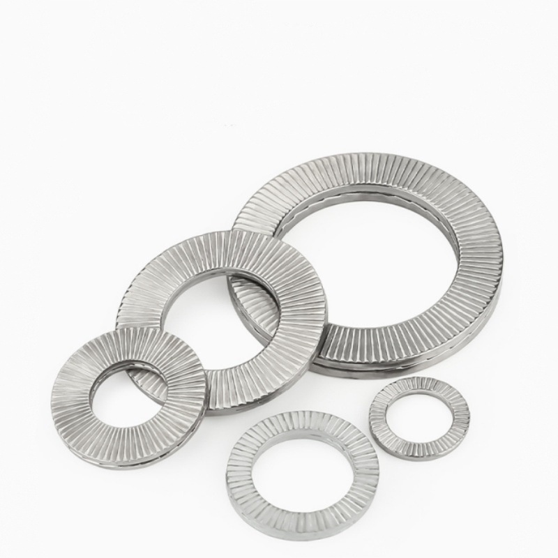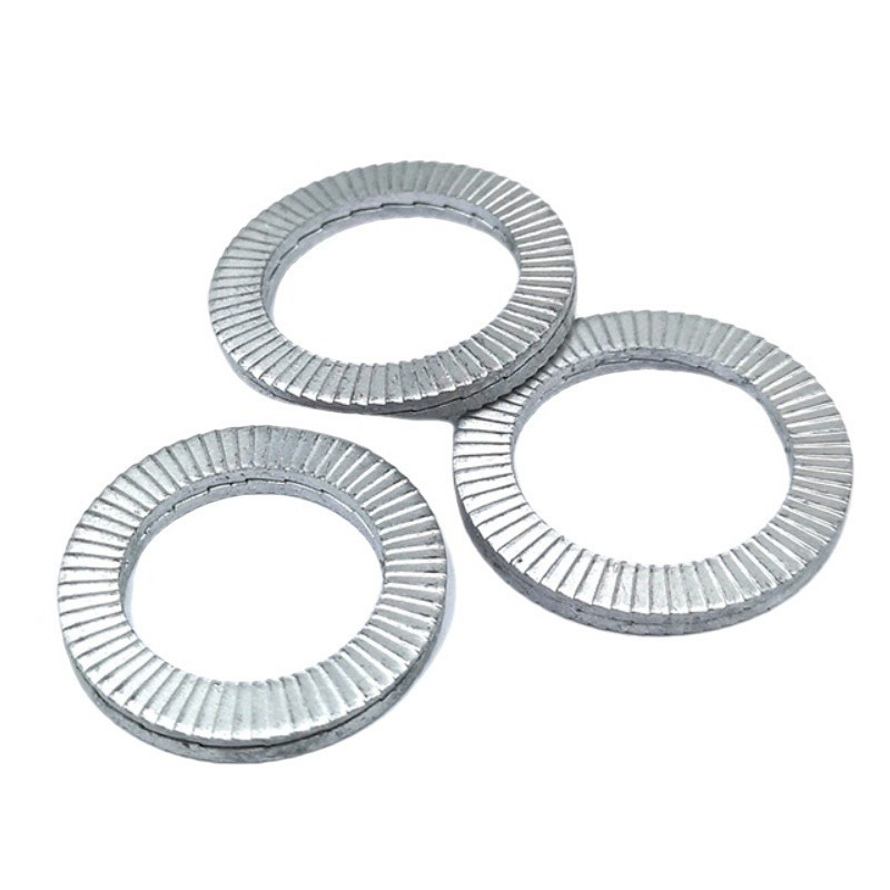 Podložke, ki so dvojno zaklepane, so običajno narejene iz ogljikovega jekla, nerjavečega jekla (vključno s SS304/SS316) in zlitinskim jeklom, da se izpolnjujejo z mehanskimi zahtevami glede različnih scenarijev. Nudimo cinkove plošče, rumeno cinkovo oblogo in splošne možnosti obdelave površin, odpornih na korozijo, kar omogoča prilagojene rešitve, prilagojene vašemu specifičnemu delovnemu okolju (kot so vlažnost, korozivni mediji in temperatura).