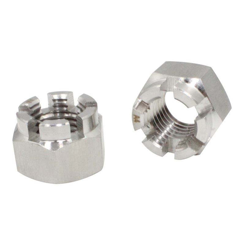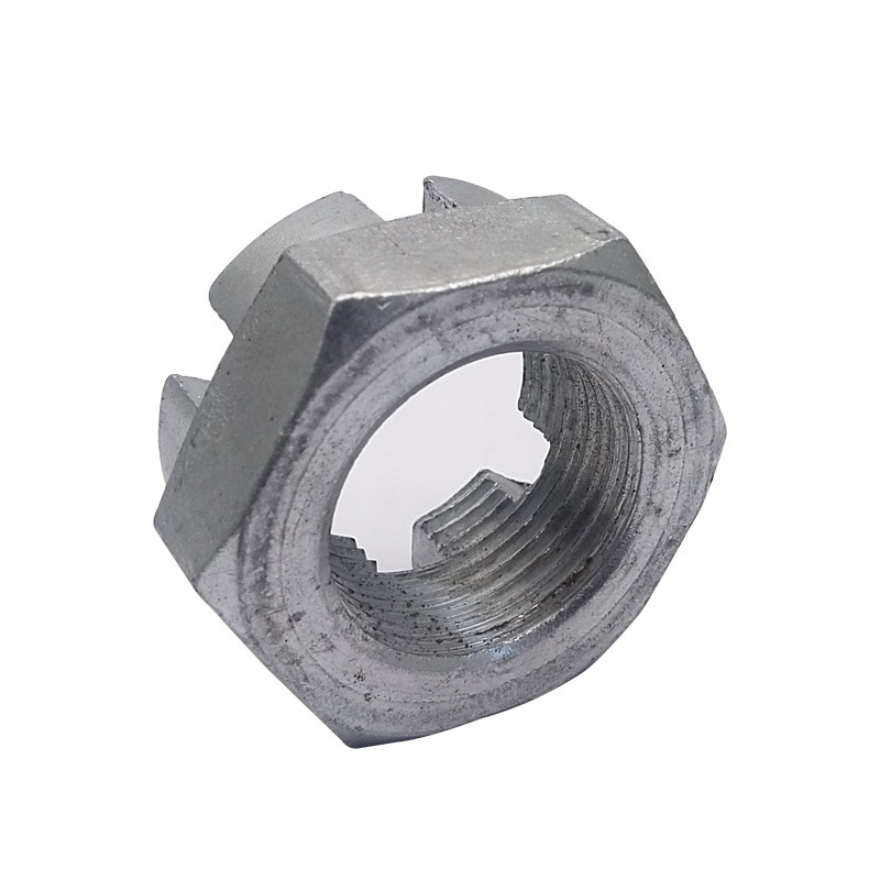 Del kupole ima več rež (običajno šest), ki se enakomerno porazdelijo in segajo naravnost vzdolž osi matice. Te reže so natančno obdelane in se lahko popolnoma ujemajo s standardnimi odprtimi zatiči. Zasnova te reže okrogle glave je praktična in varnostno usmerjena: ko zategnete matico, jo je mogoče pritrditi na mestu in tako preprečiti, da bi zaradi vibracij ali drugih sil padel iz vijaka.