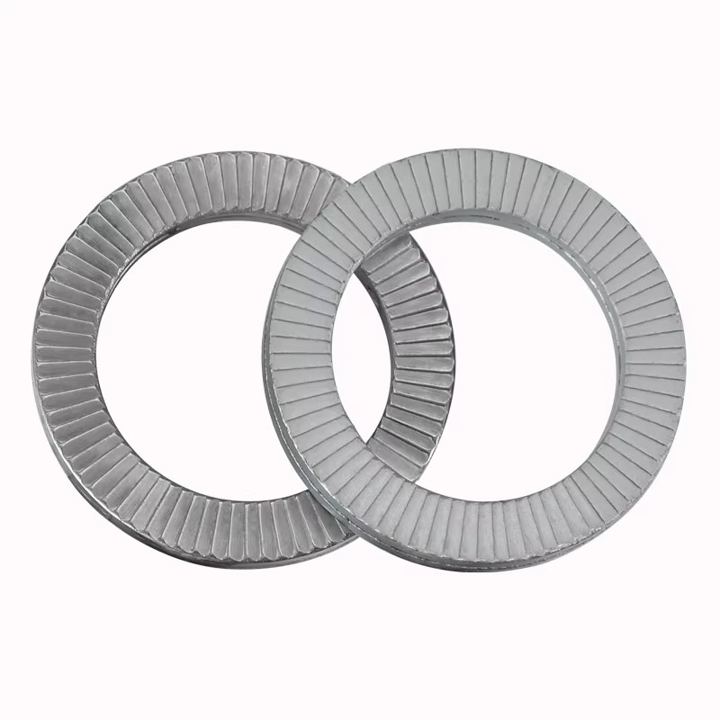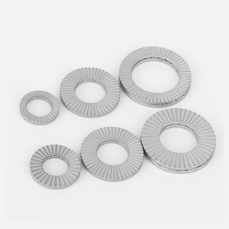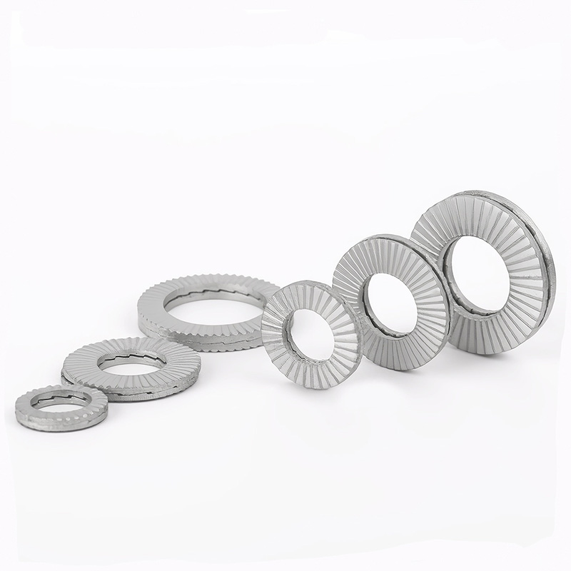 Neuspeh varen dvojno zaklepno podložko sta običajno narejena iz visoko ogljikovega jekla (na primer SAE 1070 ali 1095) ali zlitine. Ti materiali zagotavljajo podložke potrebne elastične lastnosti za pravilno delovanje, hkrati pa dajejo tudi visoko natezno trdnost, potrebno za zanesljivo delovanje v širokem razponu obratovalnih pogojev. Naravna sposobnost Spring Steel, da se odbije nazaj, omogoča, da se jezički veliko upogibajo, ko jih vstavite, kar ustvari pomembno silo zaklepanja, ki se upira obračanju. Ogljik v njih je jeklo dovolj trdo, tako da se majhni grebeni lahko resnično kopajo v površine. Jeklena neuspešna varna dvojno zaklepanje podložk sta dovolj močna za redno uporabo in za situacije, kjer je veliko stresa.