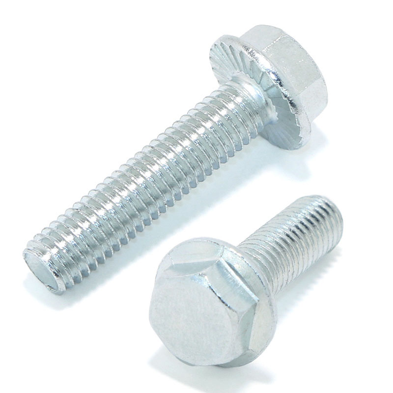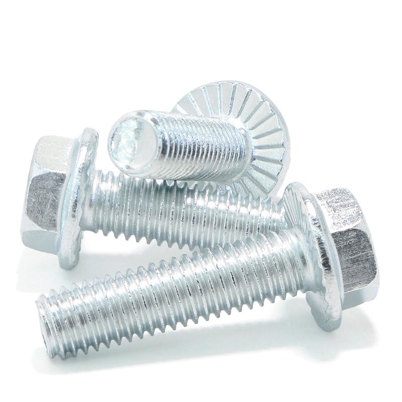 Ta vrsta vijakov s prirobnico ima jasne standarde natezne trdnosti(Pogosto uporabljeni stopnji sta 4,8 in 5,6, kar ustreza najmanjši natezni trdnosti 400 MPa oziroma 500 MPa.), in izpolnjuje običajne zahteve industrijskega razreda za stabilno prenašanje obremenitev. Znotraj nazivnega območja lahko prenese neposredno vlečno silo brez očitne deformacije, tako da se med običajno namestitvijo in vsakodnevno uporabo ne bo zlomil. Podatki o natezni trdnosti so preizkušeni pod enotnimi pogoji in uporabniki lahko neposredno preverijo označene vrednosti, da se ujemajo z opremo in gradbenimi prizori. Po toplotni obdelavi je trdota nadzorovana v fiksnem območju, tako da izdelek ne bo preveč krhek ali premehak. Ko je trdno vpet, je odporen na površinske udrtine in se ne obrabi hitro, tudi če ga pogosto razstavljate in sestavljate nazaj. Vrednosti trdote ostanejo stabilne med serijami, tako da ni velike razlike med posameznimi kosi pri velikih projektih. Ta zaponka ima zanesljivo protizdrsno delovanje pod bočno silo, zahvaljujoč posebni zasnovi kontaktne površine. Vpenjalna sila se enakomerno porazdeli, kar zmanjša tveganje za premikanje ali zrahljanje zaradi vibracij ali majhnih premikov. Za ohranitev te zmogljivosti ne potrebuje dodatnih delov, povezava pa ostane dolgo časa stabilna brez pogostega ponovnega zategovanja. Odpornost na utrujenost se testira s ponavljajočimi se obremenitvenimi cikli, zmogljivost pa sčasoma počasi upada. Dobro deluje za opremo, ki se vklaplja in izklaplja ali ima redne vibracije, s čimer se izognete razpokam zaradi utrujenosti po dolgotrajni uporabi. Vsi mehanski parametri so jasno natisnjeni na etiketi izdelka, kar uporabnikom olajša preverjanje in izbiro pravih specifikacij za dejanske delovne pogoje.