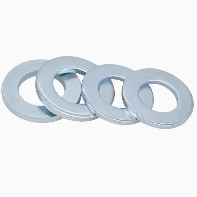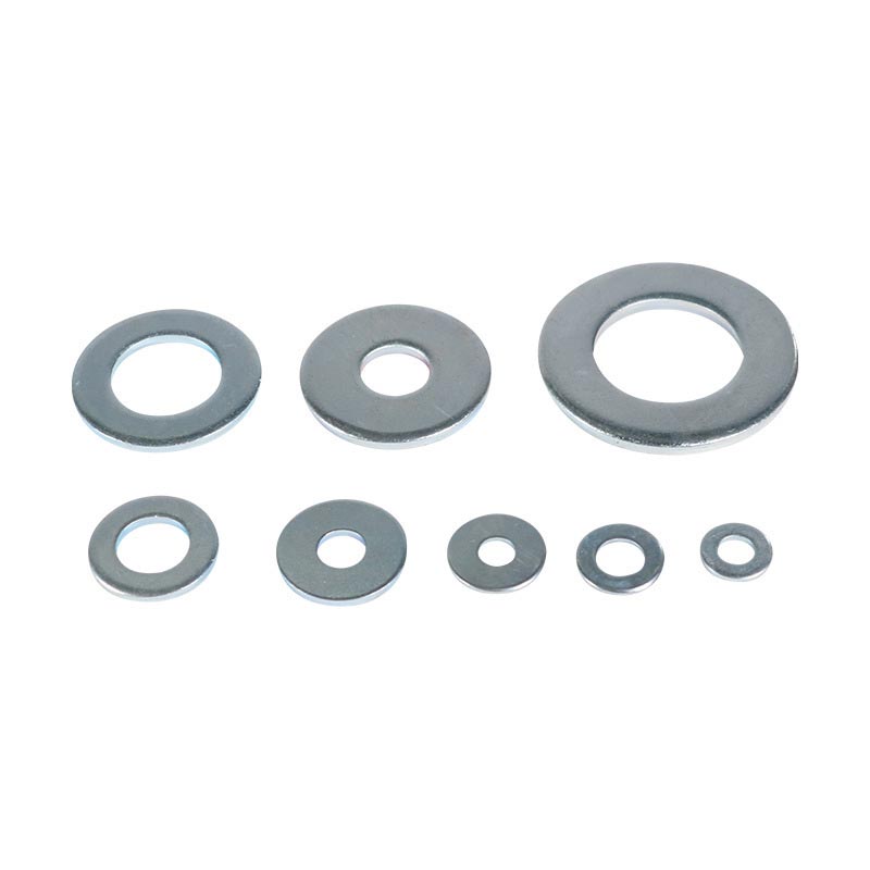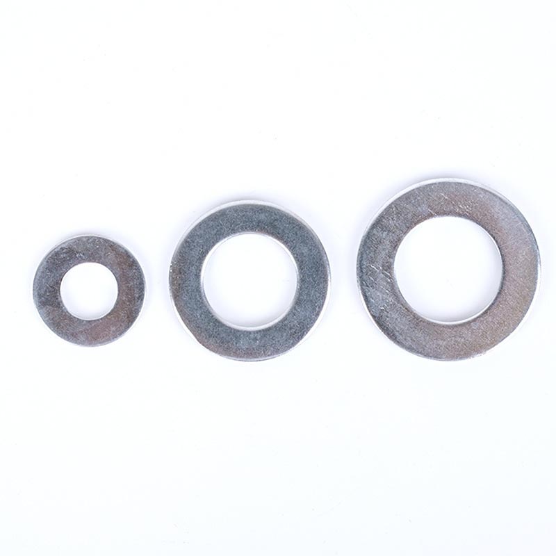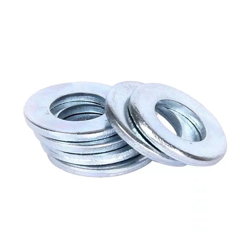 Pocinkane ploščate podložkeso pocinkane prevlečene. Ta prevleka ima visoko korozijsko odpornost in se pogosto uporablja v korozivnem okolju. Hkrati lahko naše ravne podložke uporabimo v višjih zahtevah natančne črte mehanskih priključkov, ker imajo podložke visoko trdnost in natezna trdnost povezave je primerna za različne priložnosti in pritrditve.