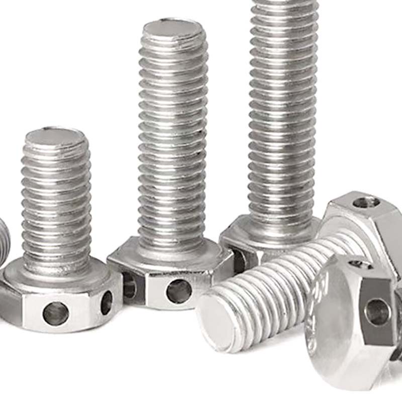 Hexagon glave vijakov z žicamiIzgledajo kot standardni šesterokotni vijaki, vendar je v glavi vrtanih več majhnih lukenj. Tako lahko žice ali kabli prenesete skozi več vijakov. Namestitve so zelo enostavne in se pogosto uporabljajo v strojih, motornih kolesih ali zunanji opremi itd.