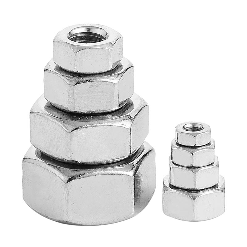 Šesterokotni oreščki slog 1so nekakšen osnovni pritrdilni element z več materiali in popolnimi specifikacijami. Material iz ogljikovega jekla je trpežen, material iz nerjavečega jekla je odporen proti rje, različne specifikacije pa ustrezajo potrebam različnih kupcev. Oreščki Hexagon so izdelani iz ogljikovega jekla (4-12 ocen), nerjavečega jekla (A2/A4), medeninastega ali zlitinskega jekla, moč se je izboljšala, bolj primerna za konstrukcijo železnic za visoke hitrosti, mostov in druge industrije.