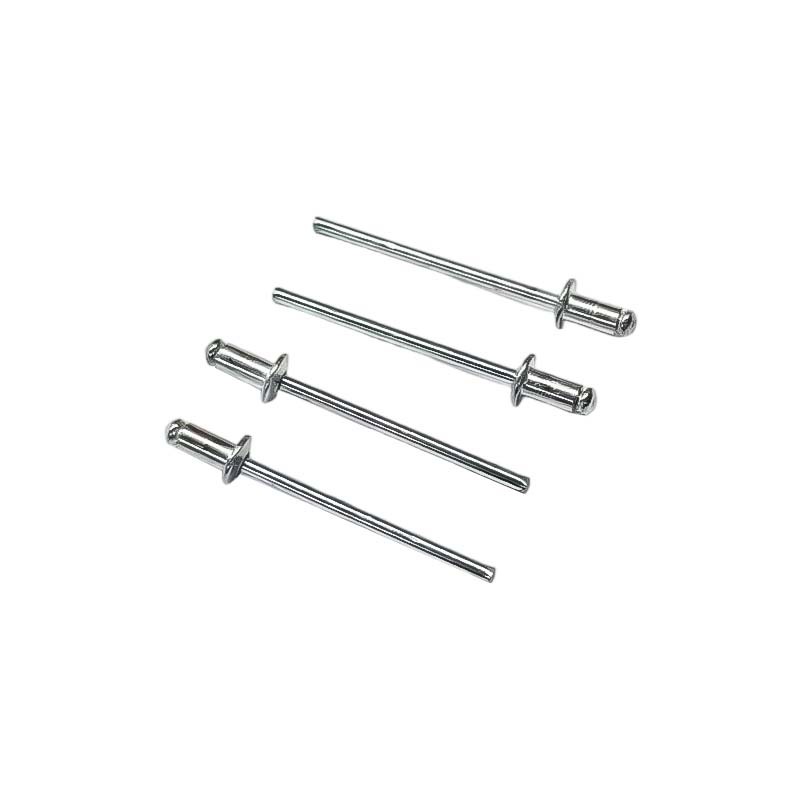 Telo se proti koncu brez glave nekoliko oži, tako da ga je enostavno potisniti v predhodno izvrtane luknje. Ko ga namestite, potegnete zatič, da razširite ohišje – tako nastane tesna, trajna sponka z gladko stranjo in izbočenim koncem na drugi. Na voljo so v različnih širinah (2,4 mm do 6,4 mm) in dolžinah, majhna, kompaktna oblika pa je odlična za tesna mesta, kjer običajni pritrdilni elementi ne ustrezajo.
