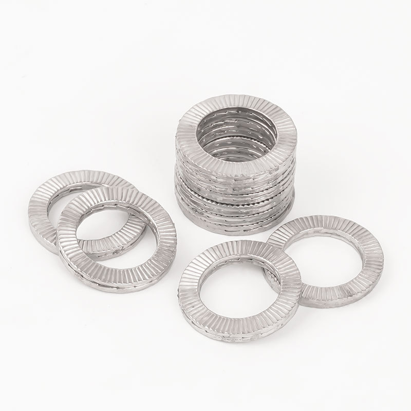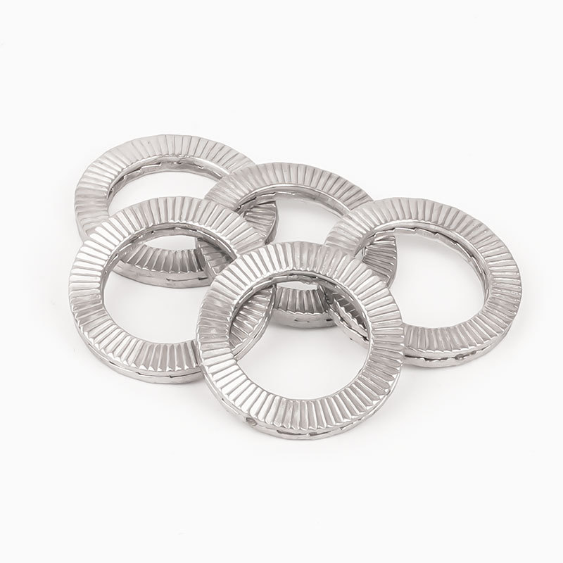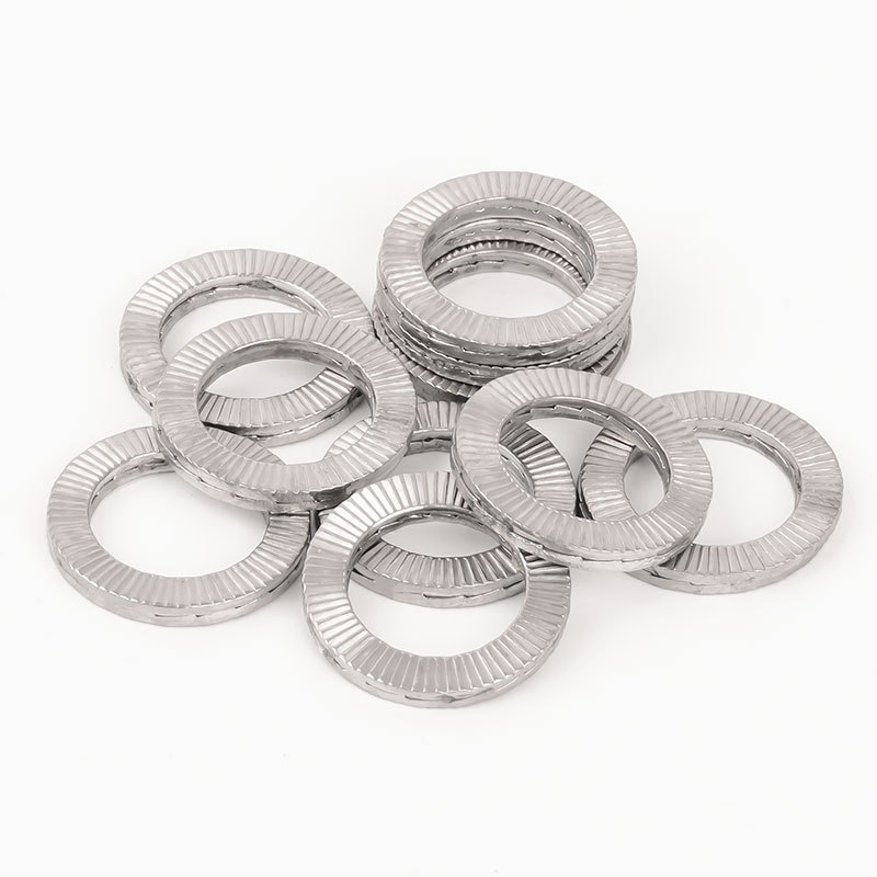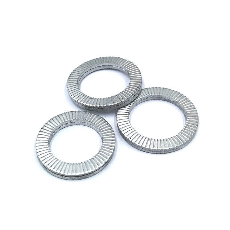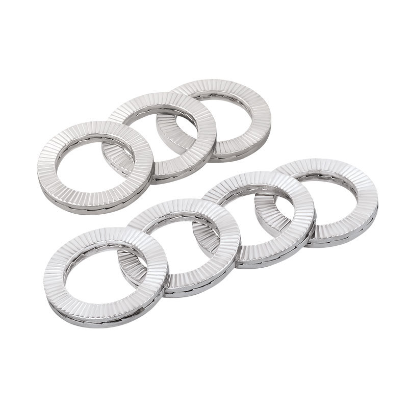 Visoko trdne dvostranske samozaklepne podložke niso videti kot običajne ploščate podložke. Ti so okrogli, z dvema koncema upognjenima navzgor - in zato se imenujejo "dvojni konci". Ko zategnete vijak, ti upognjeni konci pritisnejo tako na vijak kot na površino, kar preprečuje, da bi se vijak zrahljal.