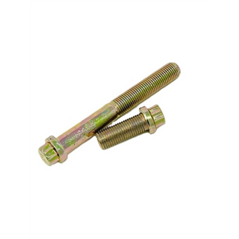 Ti jekleni 12-točkovni prirobniški vijaki z visoko natezno trdnostjo imajo standardno, praktično obliko brez dodatnih okrasnih detajlov. Zgornji del je 12-stranska glava, ki deluje z ujemajočo se 12-točkovno vtičnico za zategovanje ali popuščanje. Tik pod glavo je široka, ravna prirobnica, ki deluje kot vgrajena podložka, tako da za večino opravil ne boste potrebovali ločene podložke. Gred pod prirobnico je ravna, z gladkimi, enakomernimi navoji, ki potekajo vse navzdol, da se prilegajo maticam ali vnaprej narezanim luknjam. Ni grobih robov ali robov, ki bi otežili namestitev. Celoten pritrdilni element je kompakten in trden, narejen tako, da se prilega površini za tesno prileganje. Vsak kos ima enake natančne mere, tako da je vsak videti in se prilega enako - to olajša uporabo pri ponavljajočem sestavljanju ali hitrih zamenjavah.