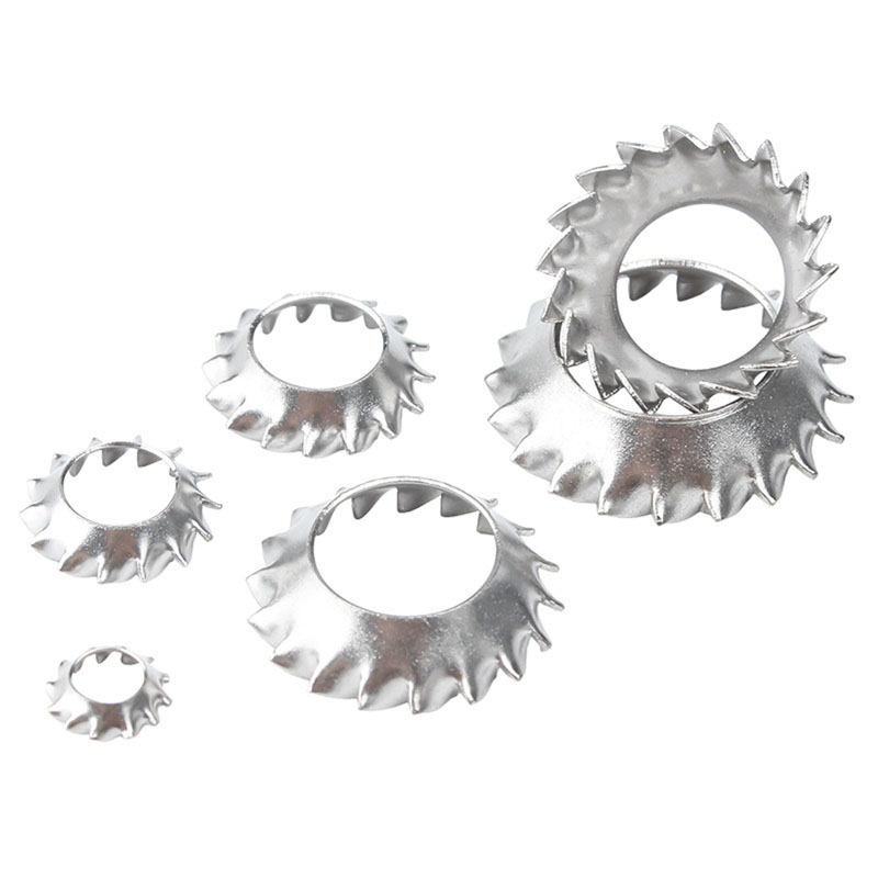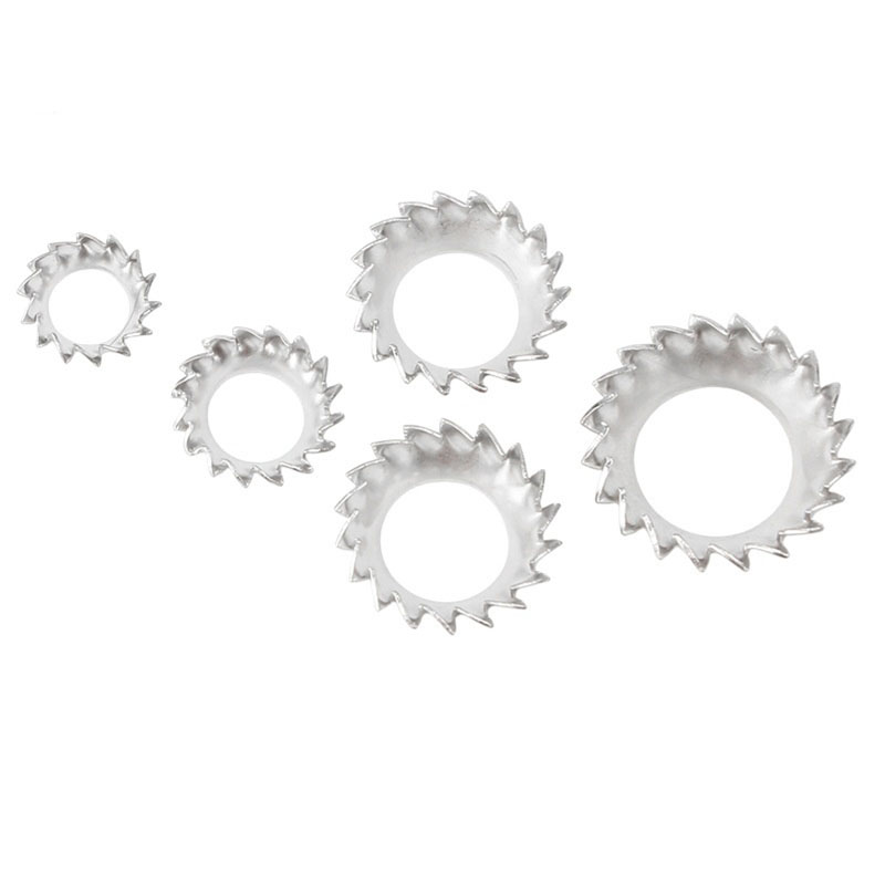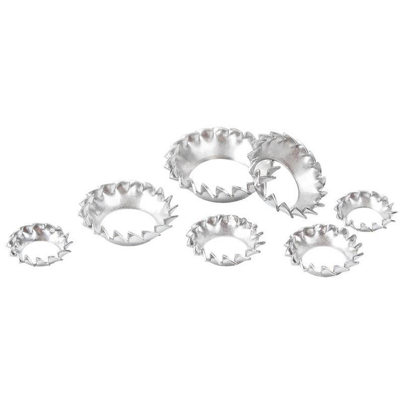 Thezožena zaklepna podložkaje pritrdilni element v obliki stožca, ki se uporablja predvsem za preprečevanje, da bi se vijak zaradi vibracij ali velike obremenitve zrahljal. Okoli njega ima majhne zobe ali grebene. Ko so nameščeni v pravilnem položaju, bodo grebeni ustvarili stabilen tlak med matico in njegovo povezovalno površino, zaradi česar bo povezava bolj varna, daljša in manj verjetno, da se bo zrahljala.