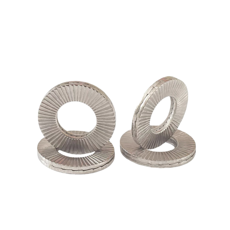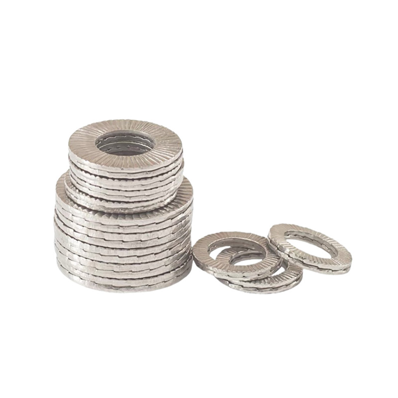 Večina električnih aplikacij uporablja navora iz nerjavečega jekla Neodvisna dvojna zaklepna podložka, ker ne rjavijo zlahka in imajo slabo prevodnost. Na primer, na domačih električnih ploščah lahko te podložke tesno priključijo odklopnike, ki preprečujejo zrahljanje vijakov in se tako izognejo požarom.