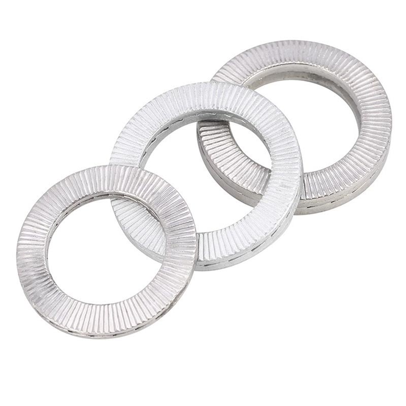 O: Te podložke z dvojnim slojem so običajno narejene iz stvari, kot so nerjavno jeklo (pomislite na SS304 ali SS316), ogljikovo jeklo z cinkovimi/dakrometnimi prevlekami ali težkimi zlitinami, kot je Inconel. Različice iz nerjavečega jekla ne rjavijo enostavno, zato so trdne za vlažna ali slana mesta. Oni iz karbona so cenejši, vendar iz teh premazov dobijo zagon, ki se borijo z rjavimi.
