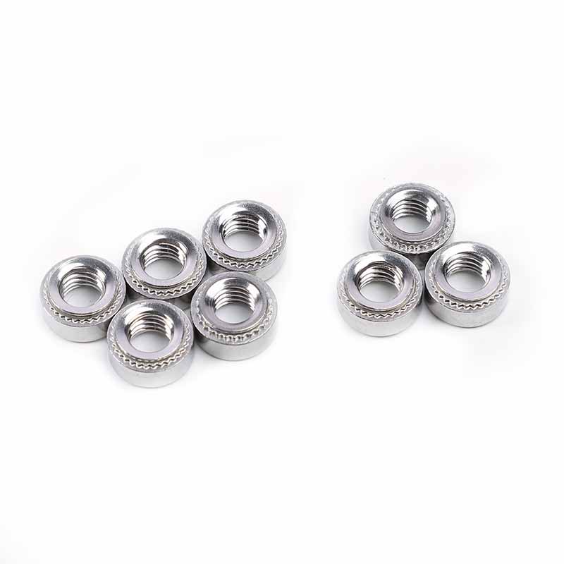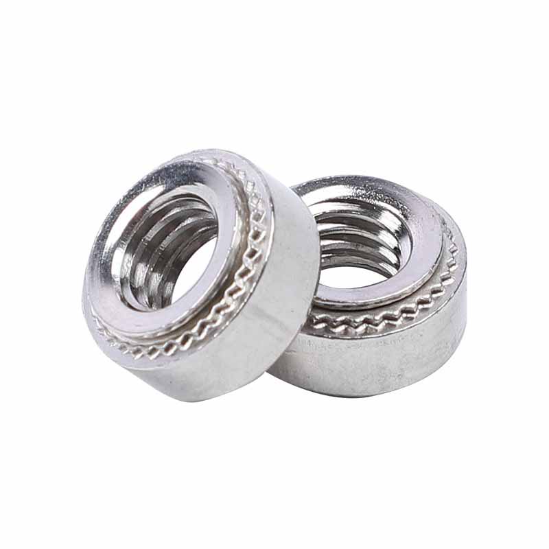 Pri namestitvi enotne niti mikro samopoškodovanje oreščkov je treba uporabiti standardno orodje za kovinske matice. Prepričajte se, da se dimenzije mandrela in konic orodja ujemajo z določeno matico. Nanesite zadostno silo, da zagotovite, da je zakovice v celoti sedeže proti osnovnemu materialu, ki tvori trdno ležajsko površino na strani slepe luknje. Pravilna namestitev zagotavlja pravilno funkcije zaklepnega obroča, kar zagotavlja vibracijsko odpornost in preprečuje enostavno odstranjevanje.