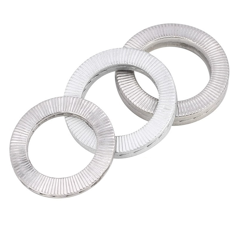 Neprevarno dvojno zaklepno podložko delujejo zaradi svoje dvodelne zasnove. Ena stran ima majhne grebene, ki se kopajo v površino, s katerimi je seznanjen, kot nosilec. Druga stran je dvignila poševne dele ali majhne klini. Ko zategnete pritrdilni element, ti poševni deli potisnejo notranje jezičke podložke in ustvarijo močan, enakomeren spomladanski pritisk proti vijaku ali matici. Ta dvosmerna zaklepanje uporablja tako trenje kot spomladansko silo, da se stvari ne obračajo-bolj kot večina drugih načinov.
