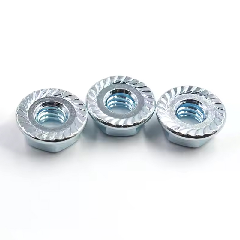 Prirobnica na dnucinkova oreška šesterokotna prirobnicaima zobe na svoji površini. Ti zobje lahko povečajo trenje s površino povezanih delov pri zategu in učinkovito preprečijo, da bi se matica popustila in se običajno uporabljajo v vibracijskih okoljih ali priložnostih, ki zahtevajo stabilne povezave, kot je pritrditev avtomobilskih delov.